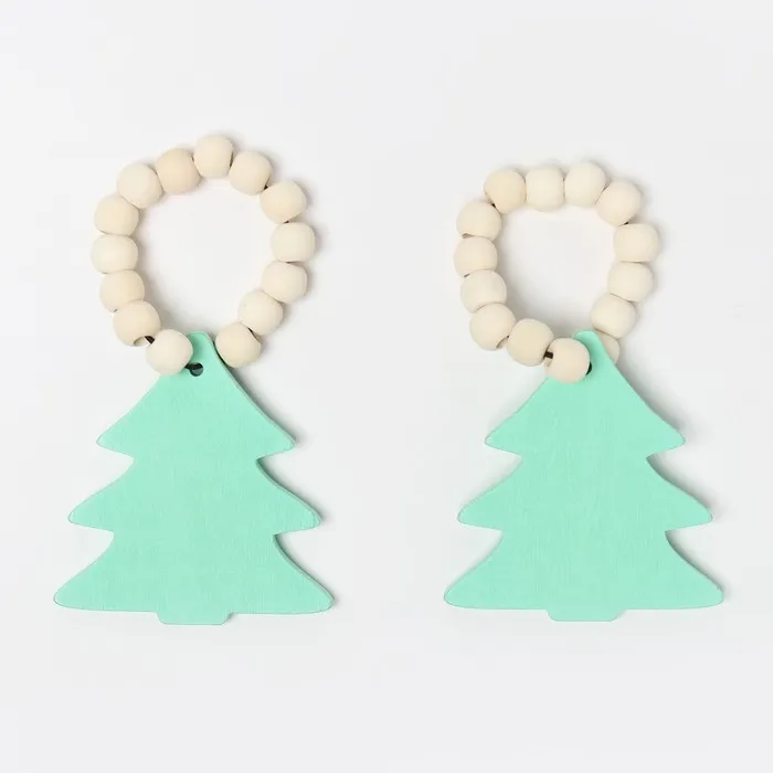 Набор новогодних колец для салфеток 2 штуки "Елочка", цвет зелёный, 6*7 см, дерево — Характеристики
