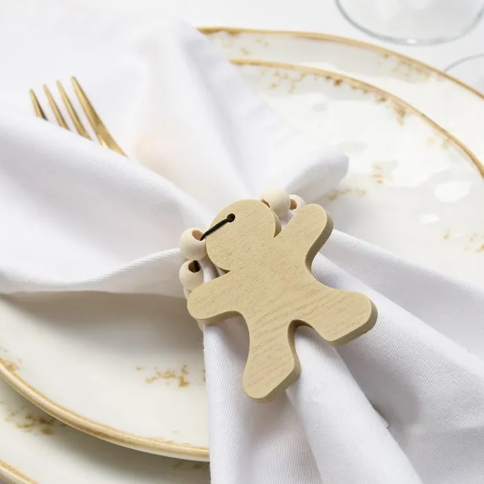 Набор новогодних колец для салфеток 2 штуки "Пряник", цвет коричневый, 6*7 см, дерево