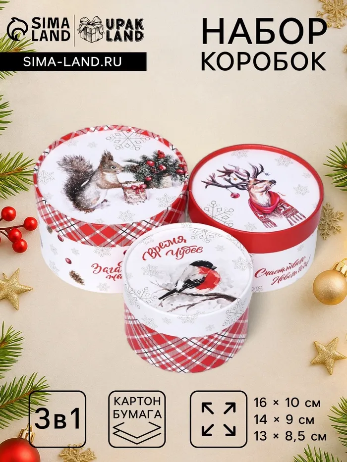Набор новогодних коробок 3 в1 «Время чудес» 16×10, 14×9, 13×8.5 см — Характеристики