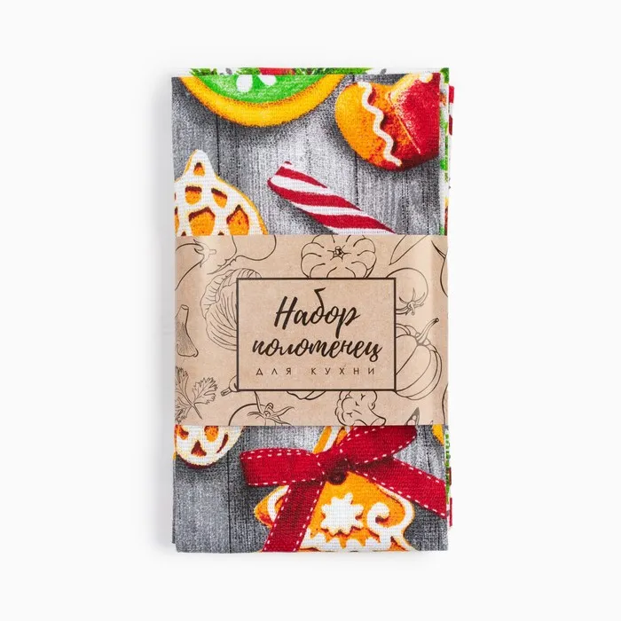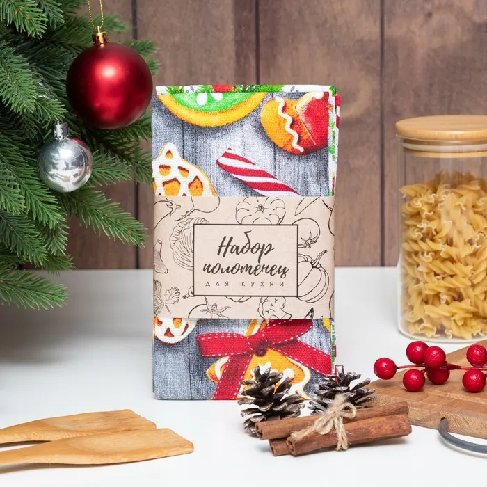 Набор новогодних кухонных полотенец Доляна «Новогоднее печенье » 35х60см-2 штуки, 100% хлопок — Характеристики