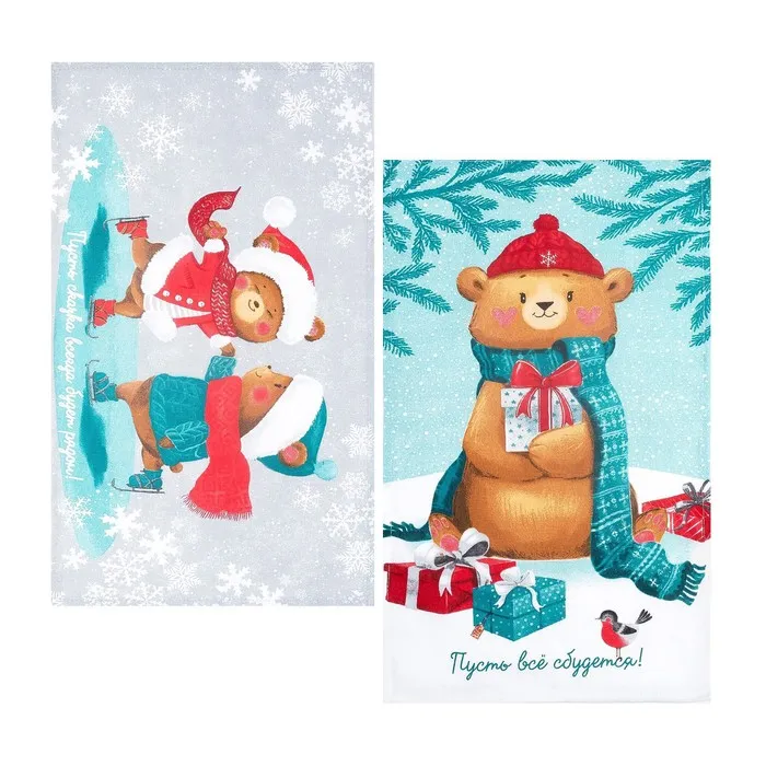 Набор новогодних кухонных полотенец «Новогодняя Сказка праздник в городе» 35х60см-2 штуки, 100% хлопок — Характеристики