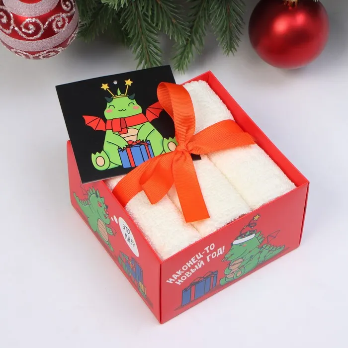 Набор новогодних махровых полотенец "Подарки" 30х30 см - 3 штуки, хлопок 340гр/м2 — Характеристики