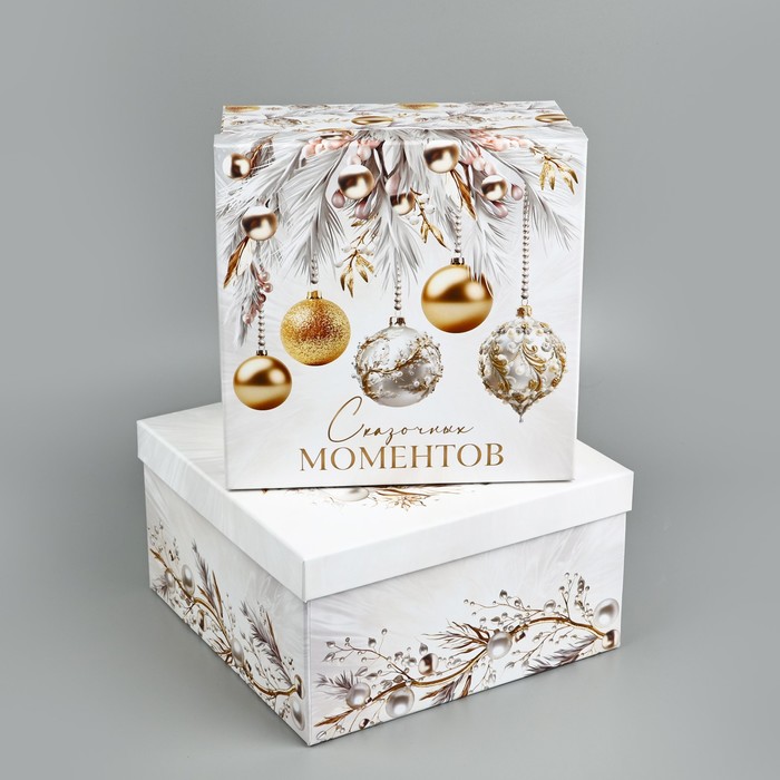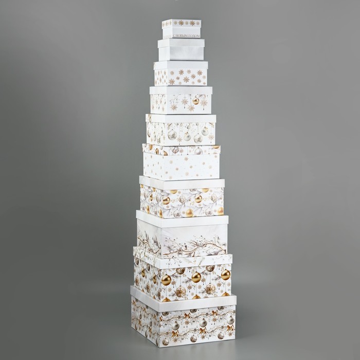 Набор новогодних подарочных коробок 10 в 1 «Белая роскошь», 10.2 х 10.2 х 6–28.2 х 28.2 х 15 см — Характеристики