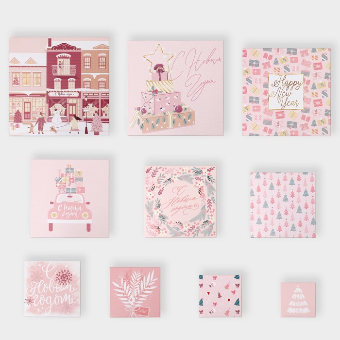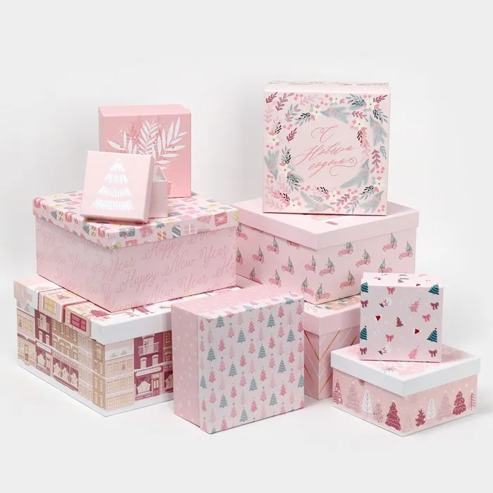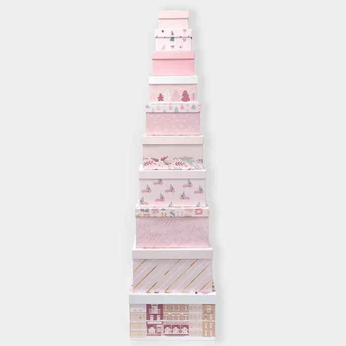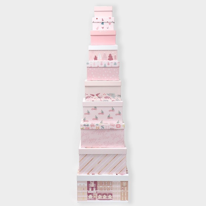 Набор новогодних подарочных коробок 10 в 1 Happy New year, 10 х 10 х 6 ‒ 28 х 28 х 15 см, Новый год — Характеристики