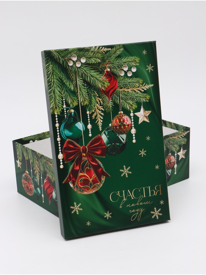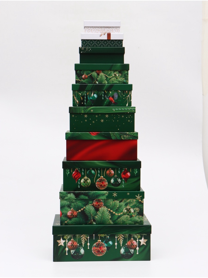 Набор новогодних подарочных коробок 10 в 1 «Изумрудные шары», 12×7×4 – 32.5×20×12.5 см — Характеристики