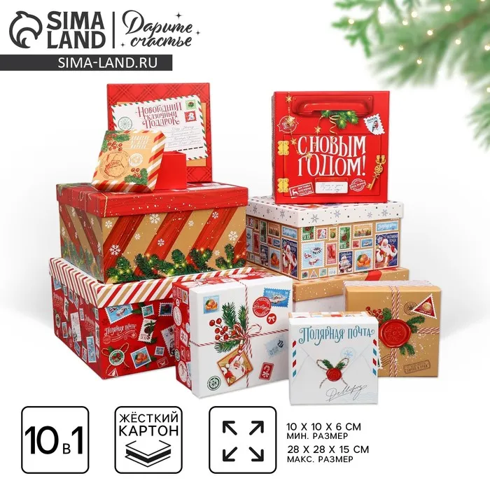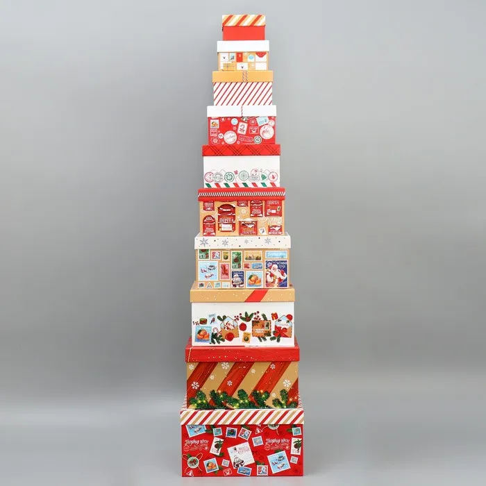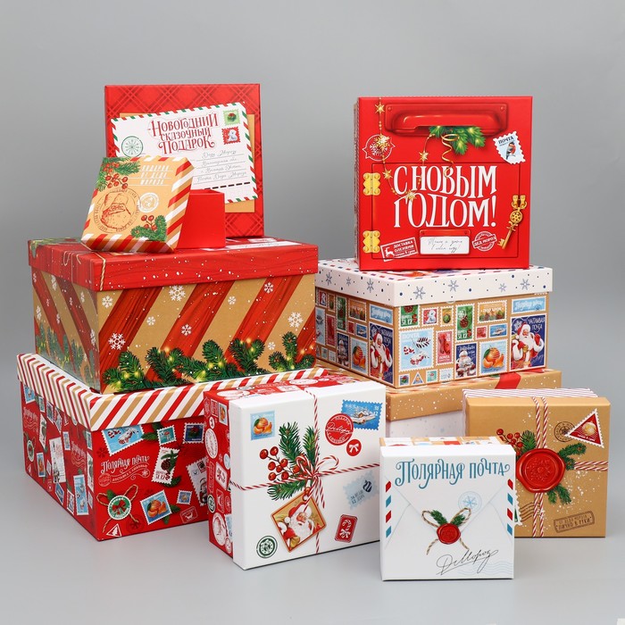 Набор новогодних подарочных коробок 10 в 1 «Новогоднее послание», 10 х 10 х 6 – 28 х 28 х 15 см — Характеристики