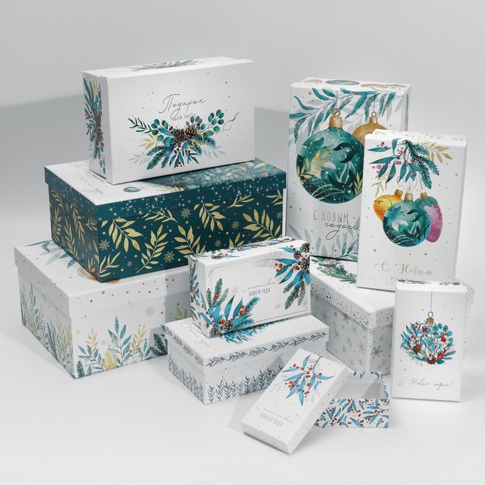 Набор новогодних подарочных коробок 10 в 1 «Счастливого Нового года», 12×7×4 - 32.5×20×12.5 см — Характеристики
