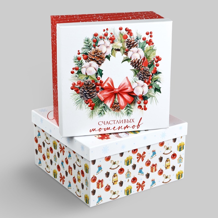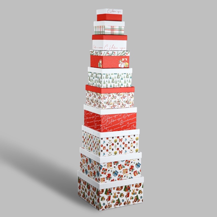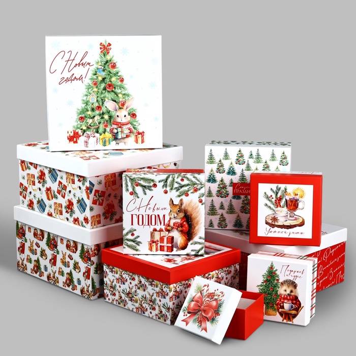 Набор новогодних подарочных коробок 10 в 1 «Уютный Новый год», 10×10×6–28×28×15 см — Характеристики