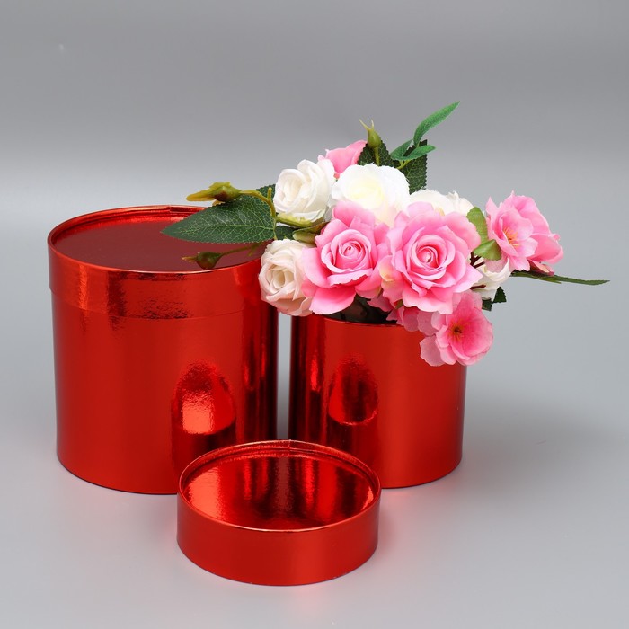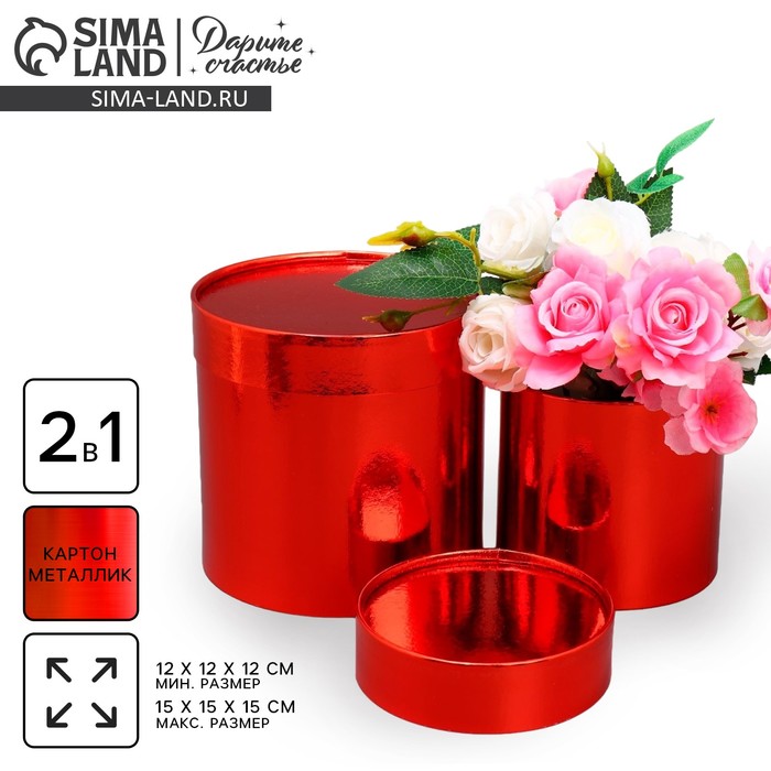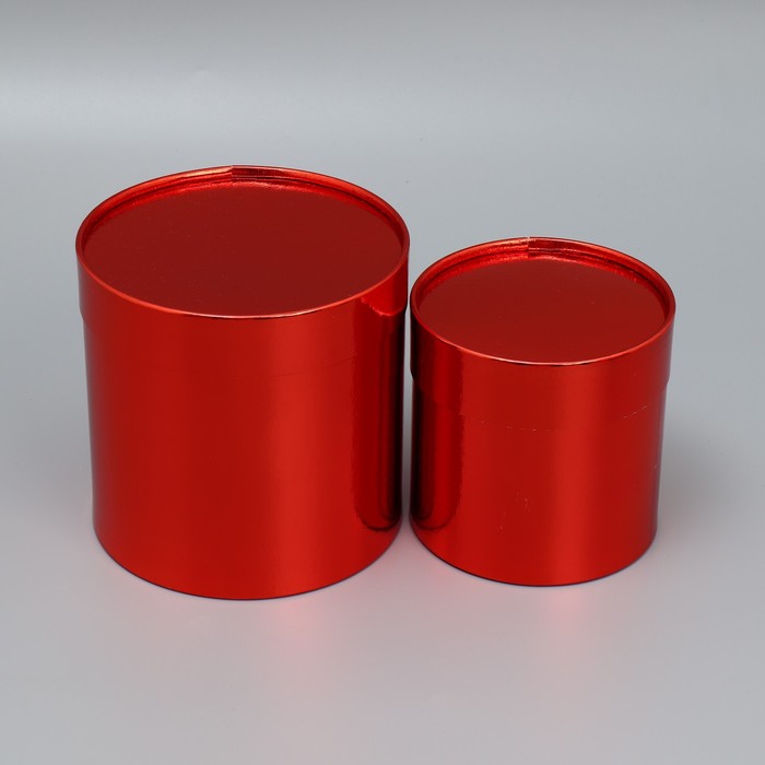 Набор новогодних подарочных коробок 2 в 1 круглые «Однотонный», красный металлик, 12 х 12, 15 х 15 см — Характеристики