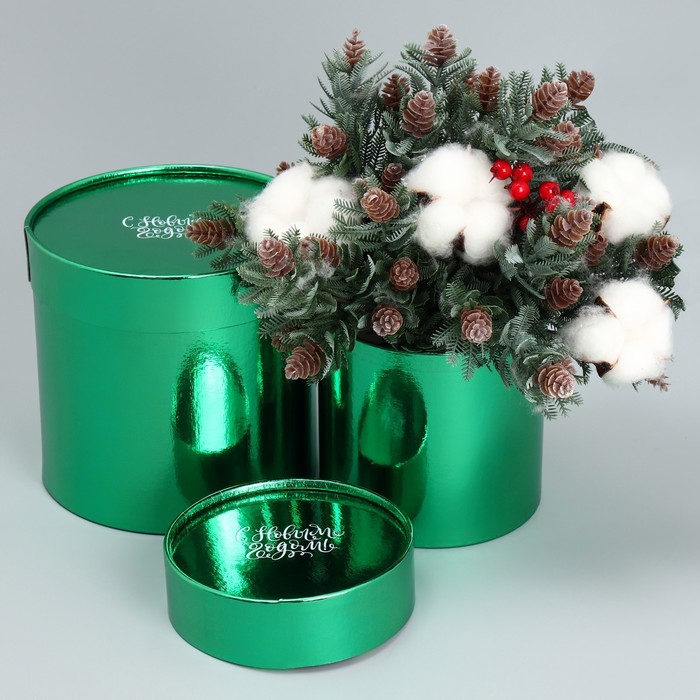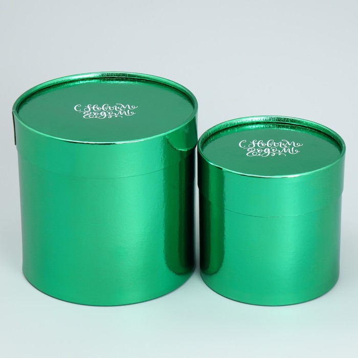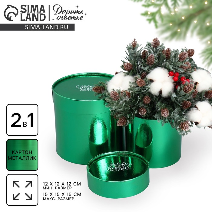 Набор новогодних подарочных коробок 2 в 1 круглые «С Новым годом», зелёный металлик, 12 х 12, 15 х 15 см — Характеристики