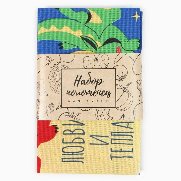 Набор новогодних полотенец Доляна "Любви и тепла" 28х46 см - 2 штуки, 100% хлопок, рогожка 164 г/м2 — Характеристики