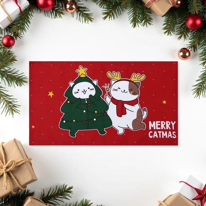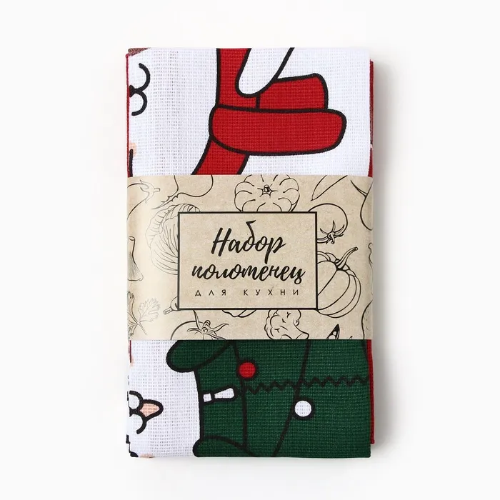 Набор новогодних полотенец "Доляна" Merry catmas 35х60см-3 штуки,100% хлопок 160 г/м2 — Характеристики