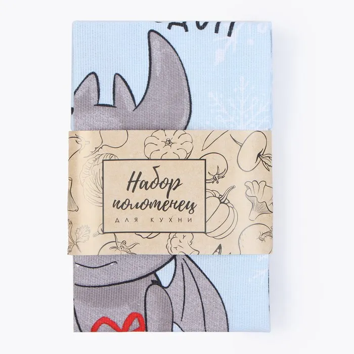 Набор новогодних полотенец Доляна "Рождественский дракон" 28х46 см - 2 штуки, 100% хлопок, рогожка 164 г/м2 — Характеристики