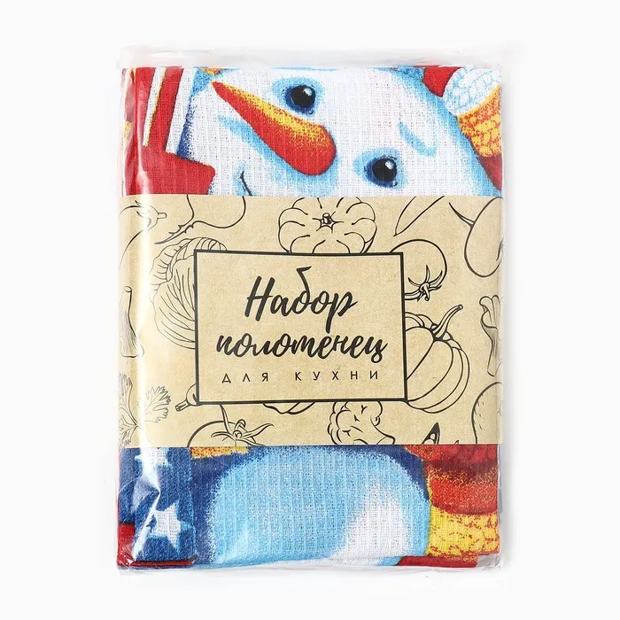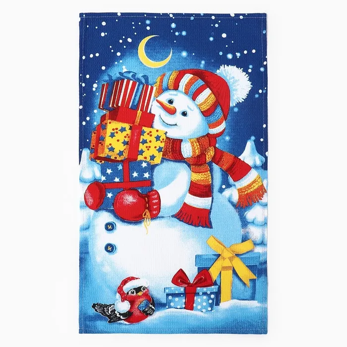 Набор новогодних полотенец "Доляна" Снеговик 35х60см-3штуки, 100% хлопок, вафельное полотно 162г/м2 — Характеристики