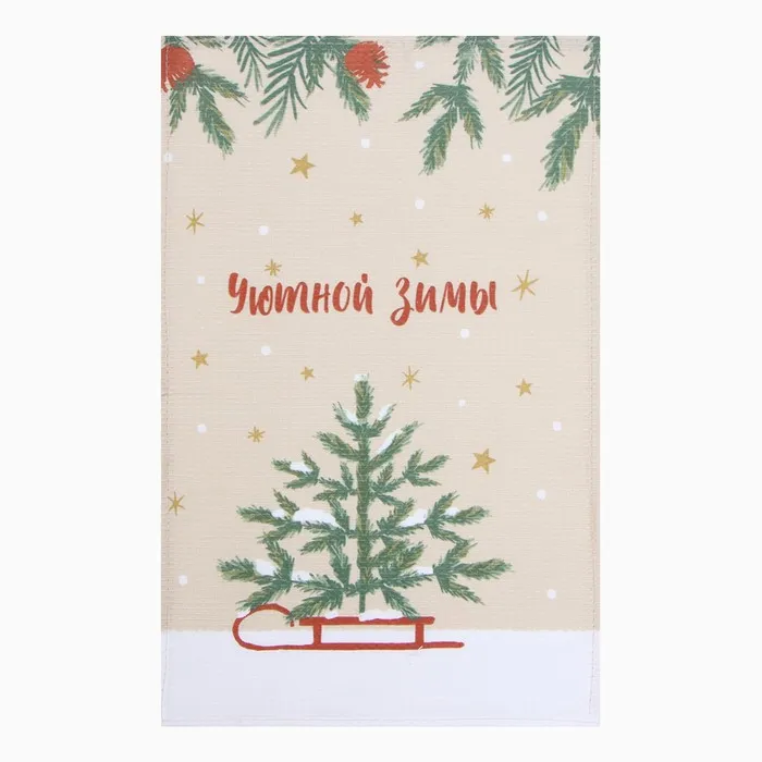 Набор новогодних полотенец Доляна "Зимние праздники" 28х46 см - 2 штуки, 100% хлопок, вафля 160 г/м2