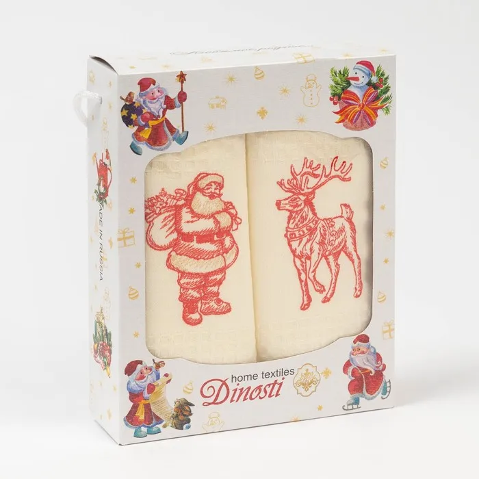 Набор новогодних полотенец вафельных Рождественские встречи, размер 33х60см, 2 шт, вафля 190г/м, 100% хлопок — Характеристики