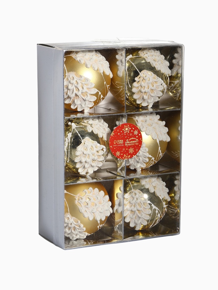 Набор новогодних шаров «Ловель», d=8 см, 6 шт., пластик, золото — Характеристики