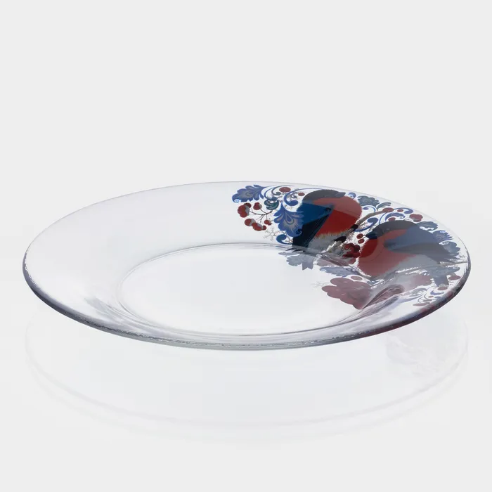 Набор новогодних стеклянных тарелок «Снегири на рябине», d=19,6 см, 6 шт — Характеристики