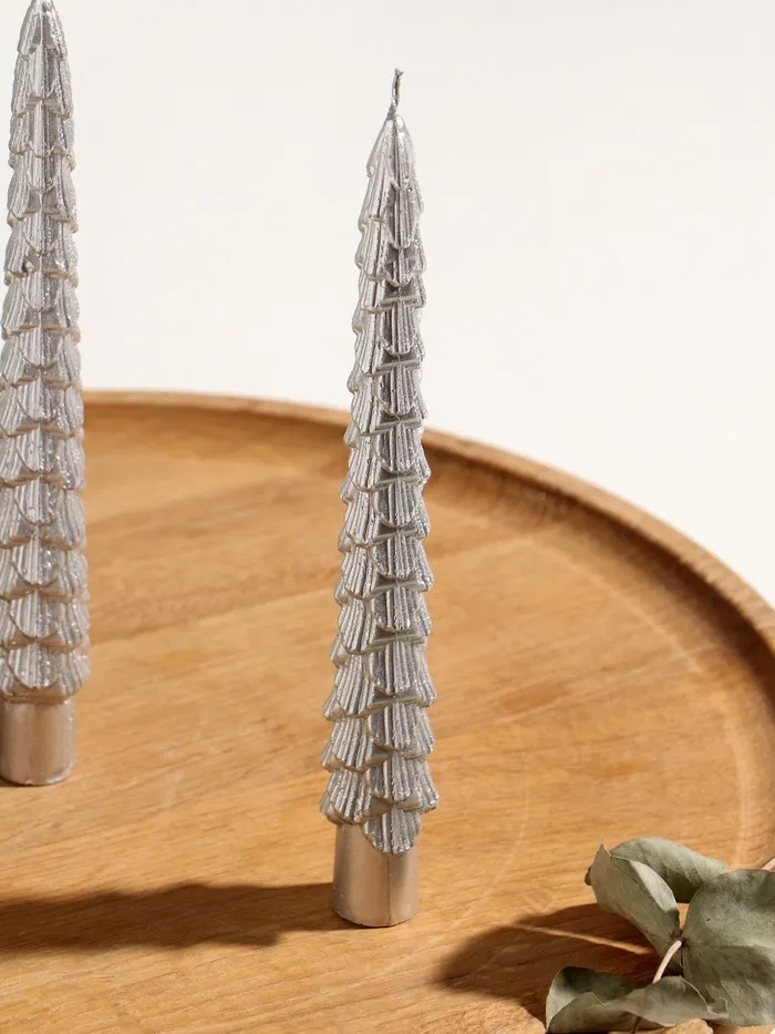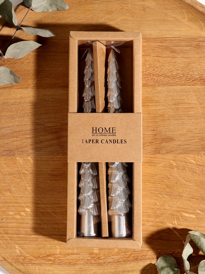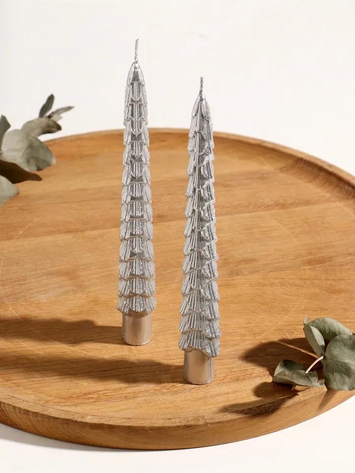 Набор новогодних свечей «Ель», 1.9×1.9×20 см, 2 шт., серебро