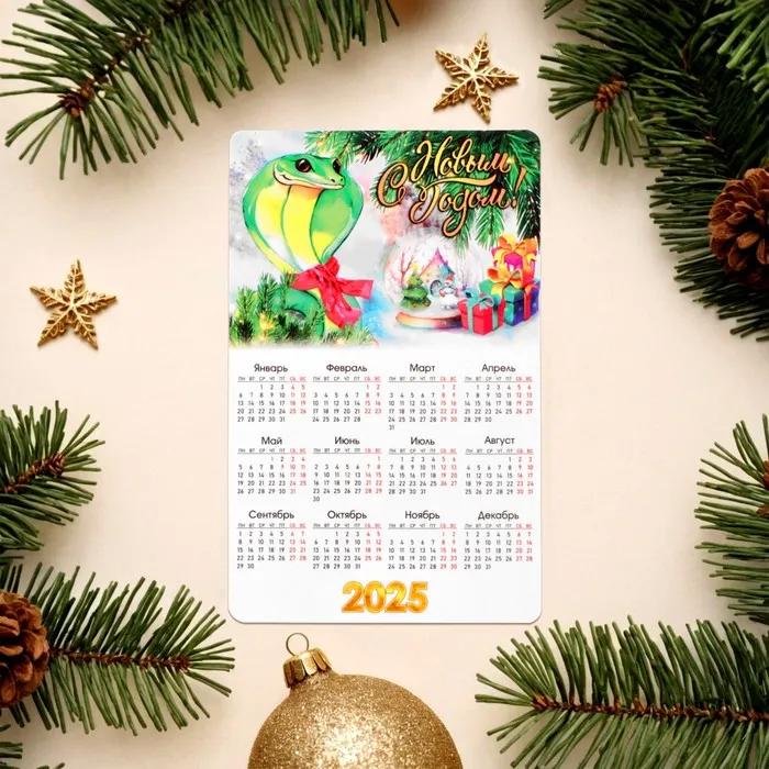 Набор новогодних, змея, магнитов-календарей "Удачного Года!" символ года, 11 х 9 см — Характеристики