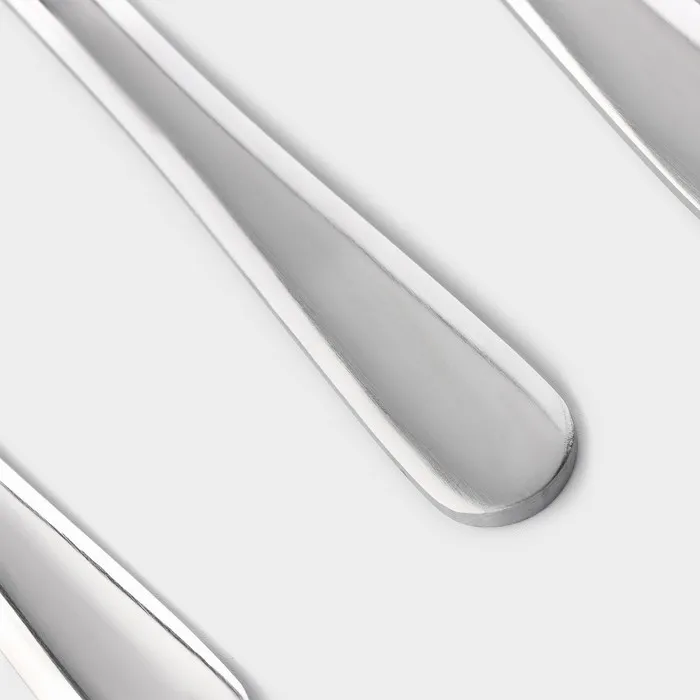 Столовые приборы Доляна серии «Уют» изготовлены из нержавеющей стали 410 марки. Все приборы этой серии имеют классический стильный дизайн, поэтому подойдут как для повседневной, так и для праздничной сервировки. Лаконичный вид и высокое качество исполнения столовых приборов добавит стиля к сервировке праздничного стола и комфорта в повседневном использовании. Приборы имеют оптимальную толщину, они не гнутся и прослужат вам долго.