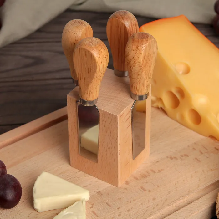 Набор ножей для подачи сыра, 4 шт., на магнитной подставке, бразильская гевея, 8.5×8.5×16.5 см, бежевый — Характеристики