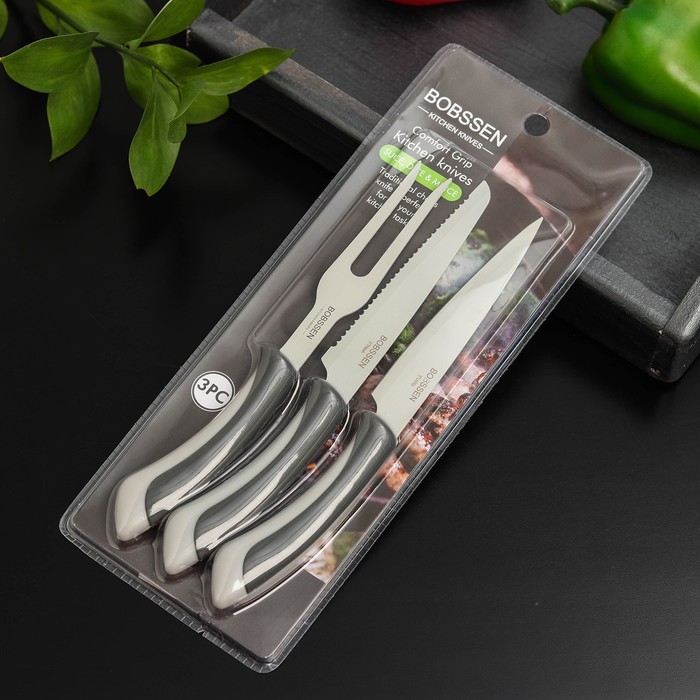 Набор ножей Faded, 3 предмета: ножи, вилка для мяса, цвет серый — Характеристики
