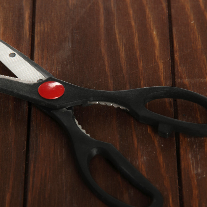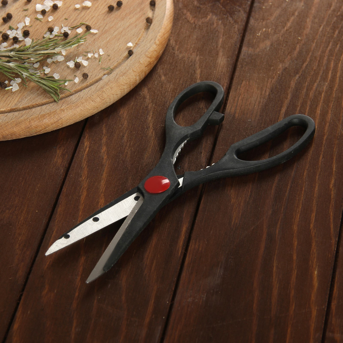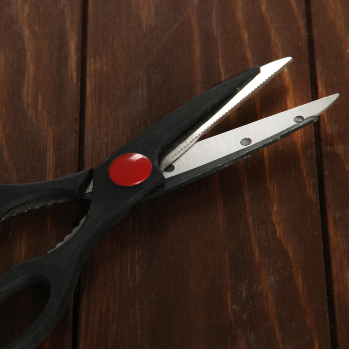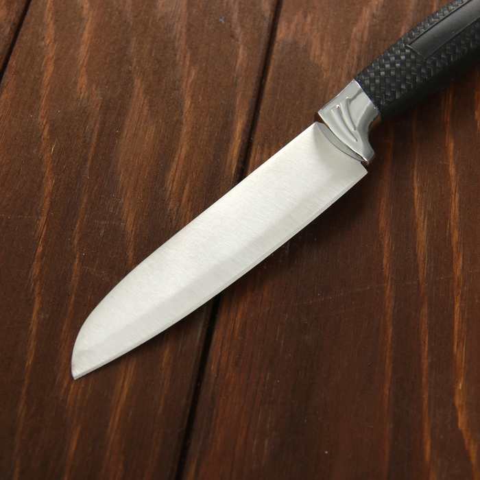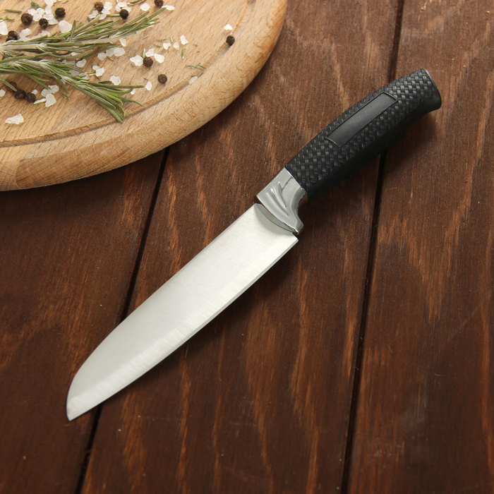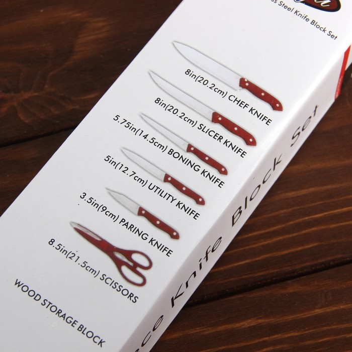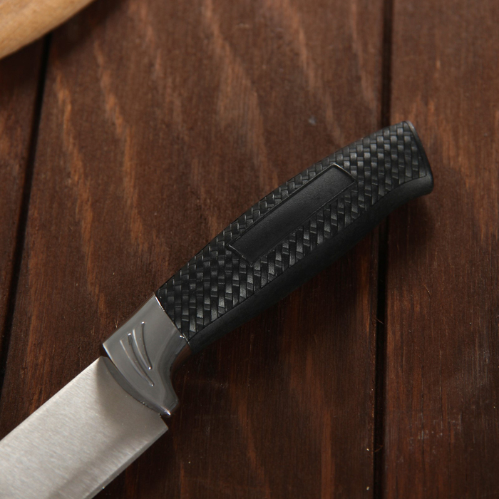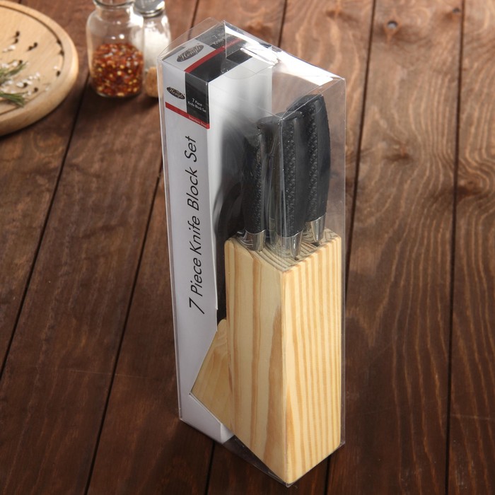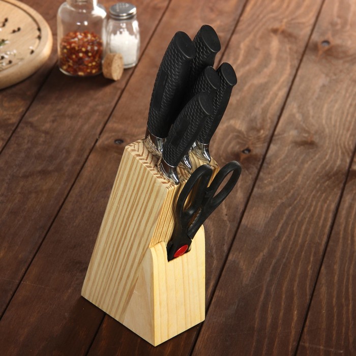 Набор ножей кухонных на подставке, 6 предметов: 5 ножей 8,5 см, 12 см, 12 см, 19,7 см, 19 см, ножницы, цвет чёрный — Характеристики