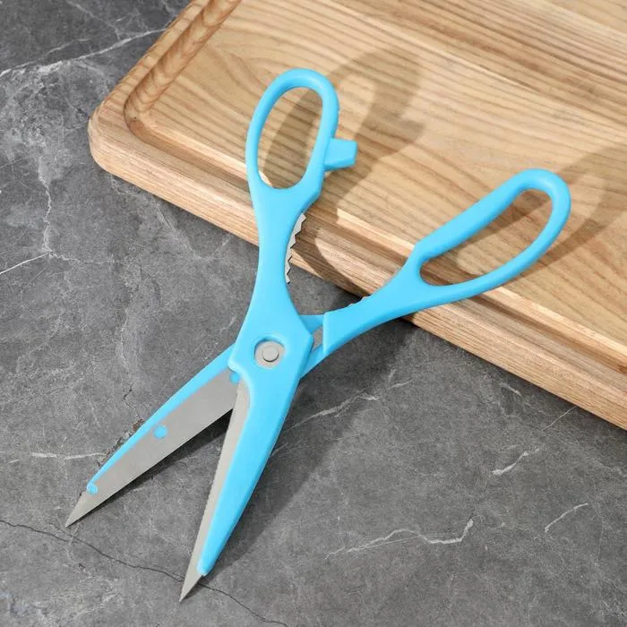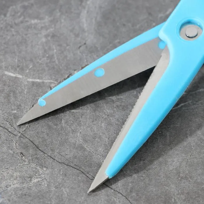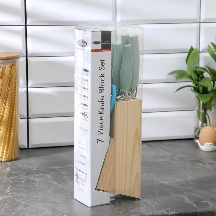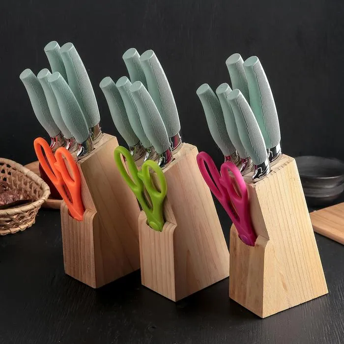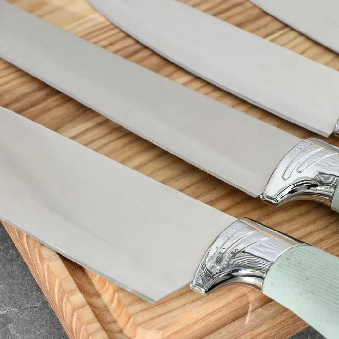 Набор ножей кухонных на подставке, 6 предметов: 5 ножей 8,5 см, 12 см, 12 см, 19,7 см, 19 см, ножницы, цвет голубой — Характеристики