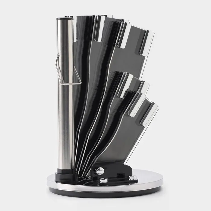 Высококачественная нержавеющая сталь: Лезвия ножей изготовлены из прочной и долговечной нержавеющей стали, которая обеспечивает высокую прочность и устойчивость к коррозии. Благодаря этому, ваши ножи будут служить вам верой и правдой на протяжении многих лет.Эргономичные рукоятки: Ручки ножей выполнены из высококачественного материала, который обеспечивает удобный и безопасный захват. Благодаря продуманной форме ручек, ваши руки будут меньше уставать при использовании ножей.Стильная подставка: Набор ножей поставляется с прочной и устойчивой подставкой, которая не только стильно выглядит, но и обеспечивает безопасное хранение ваших ножей. Подставка также позволяет легко выбрать нужный нож без необходимости поиска его в ящике.Идеальный баланс: Благодаря точно выверенной балансировке, ножи обладают идеальным весом, что обеспечивает комфорт и безопасность при использовании.