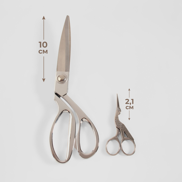 Набор ножниц подарочный: закройные 9", 23.5 см, вышивальные «Цапельки» 3.7", 9.5 см, цвет серебряный — Характеристики