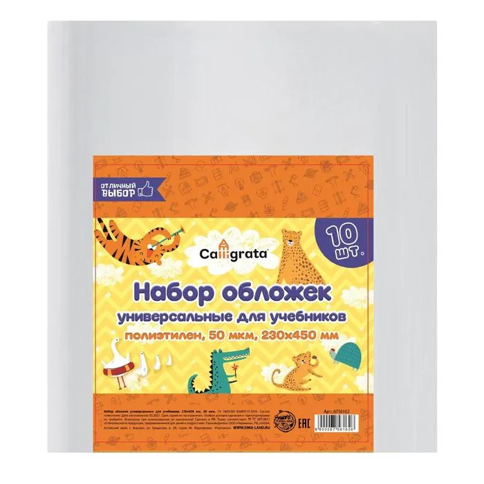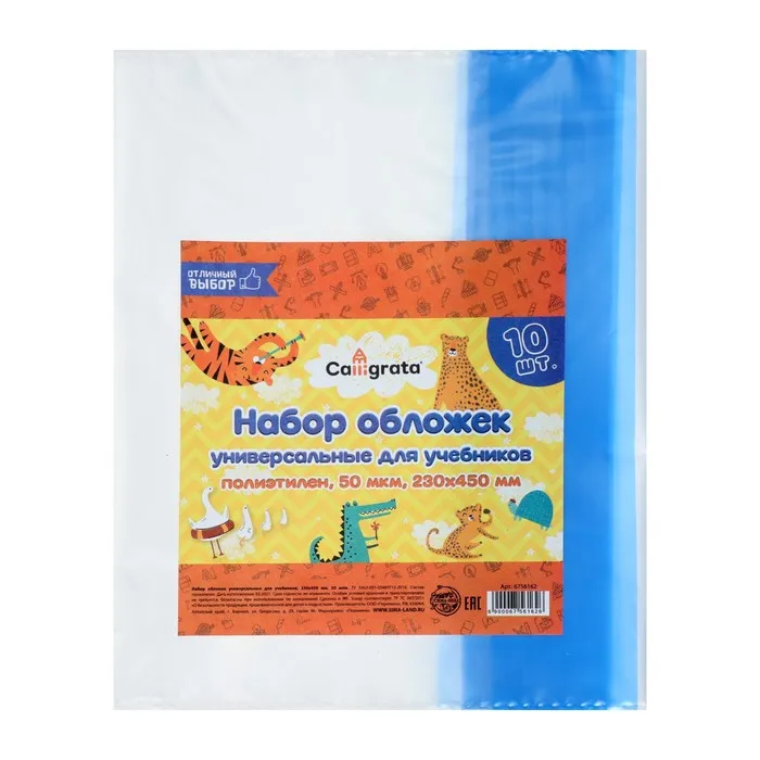 Набор обложек ПЭ 10 штук, 230 х 450 мм, 50 мкм, для учебников, универсальные — Характеристики