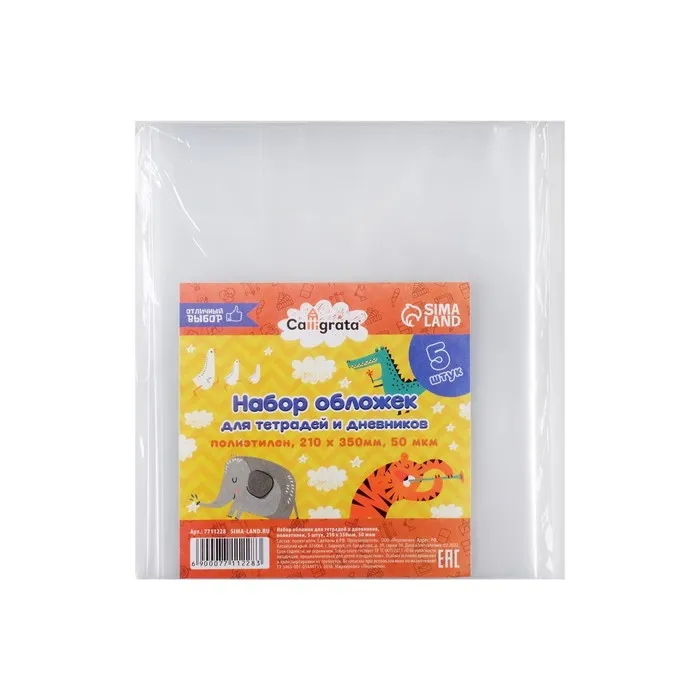 Набор обложек ПЭ 5 штук, 210 х 350 мм, 50 мкм, для тетрадей и дневников (в мягкой обложке) — Характеристики