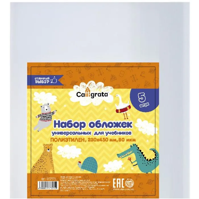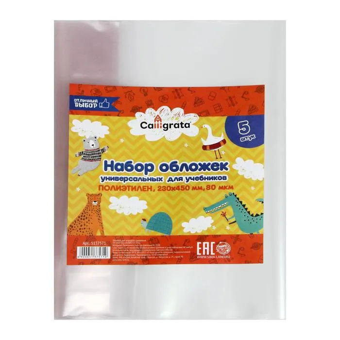 Набор обложек ПЭ 5 штук, 230 х 450 мм, 80 мкм Calligrata, для учебников, универсальные — Характеристики
