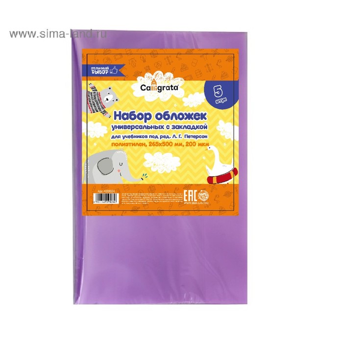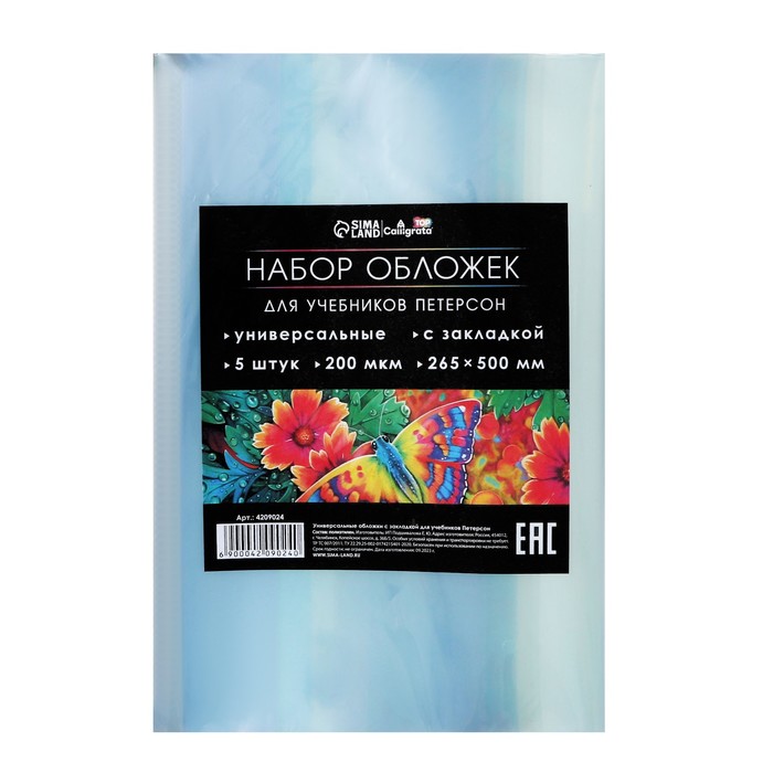 Набор обложек ПЭ 5 штук, 265 x 500 мм, 200 мкм, для учебника Петерсон, универсальная, с закладкой, МИКС — Характеристики