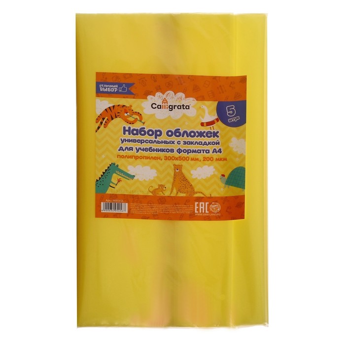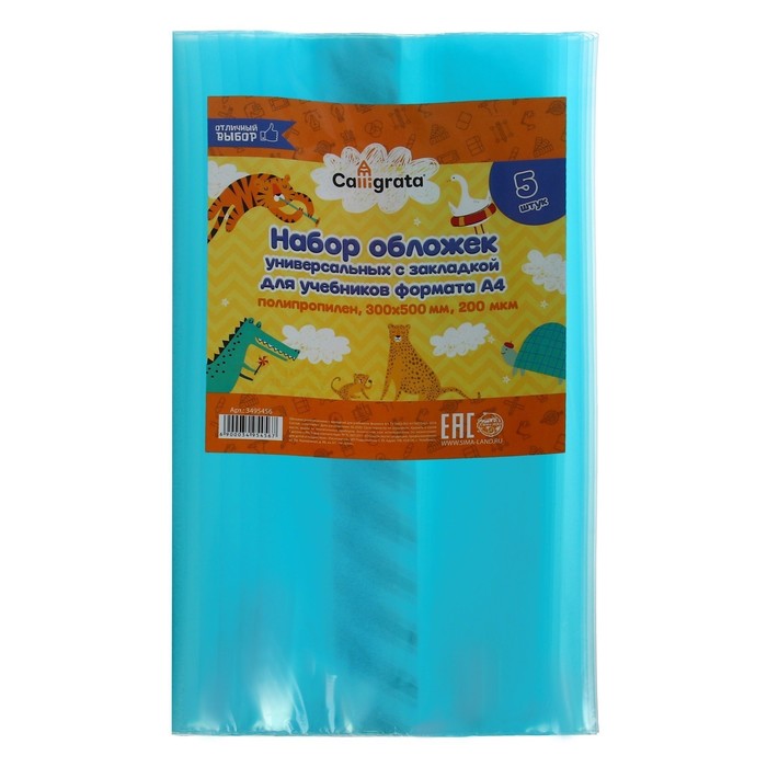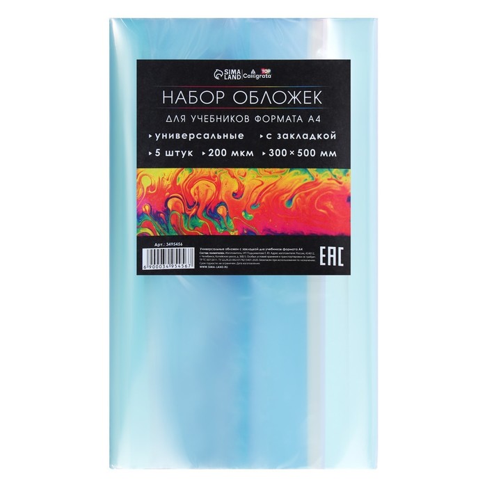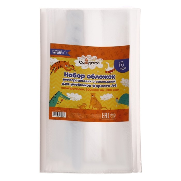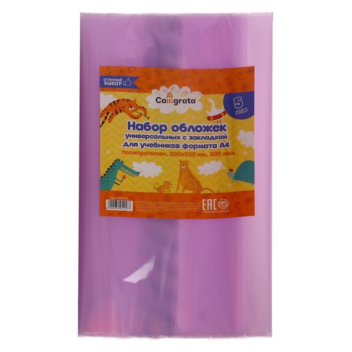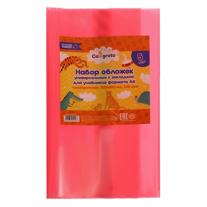 Набор обложек ПЭ 5 штук, 300×500 мм, 200 мкм, для учебников формата А4, универсальная, с закладкой, МИКС — Характеристики