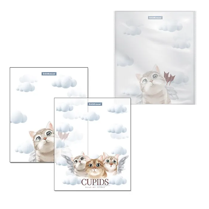 Набор обложек ПП 12 шт, 212 х 347 мм, 80 мкм, ErichKrause "Cupids", для тетрадей и дневников, МИКС — Характеристики