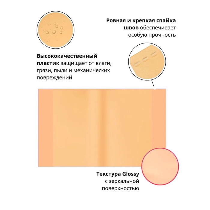 Обложка из высококачественного прозрачного пластика с особо прочными швами и текстурой поверхности "Glossy", на которой не видно отпечатков пальцев и мелких царапин. Надежно защищает тетради и дневники от повреждений.