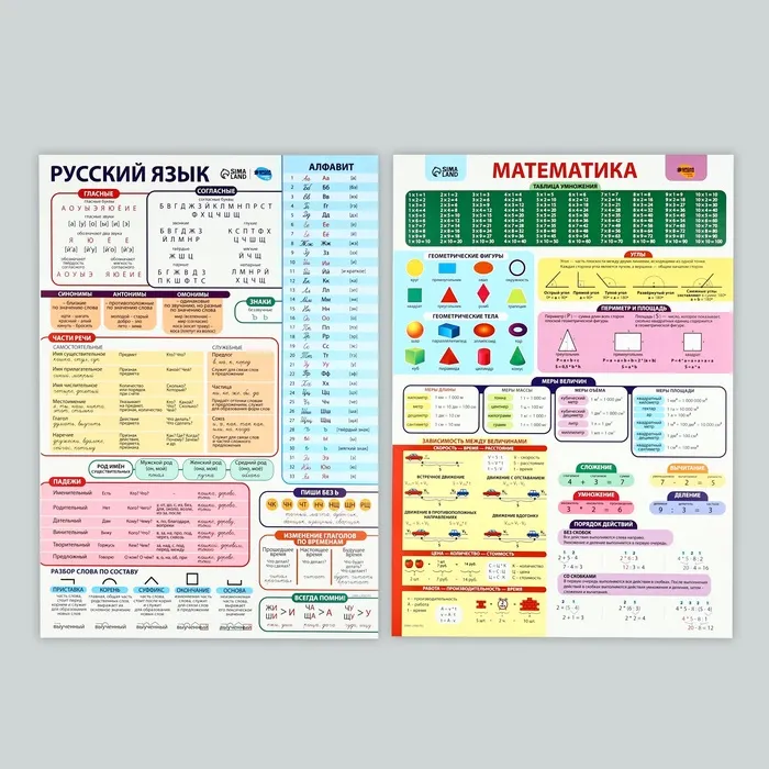 Набор обучающих плакатов «Русский язык и математика 1-4 класс» 2 в 1, А3 — Характеристики