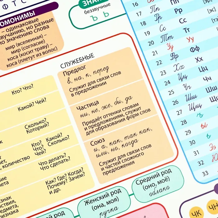 Обучающий плакат для первоклассников и детей начальной школы превратит изучение в увлекательную игру. Этот постер для детской комнаты также станет отличной подсказкой ребёнку во время выполнения домашнего задания.