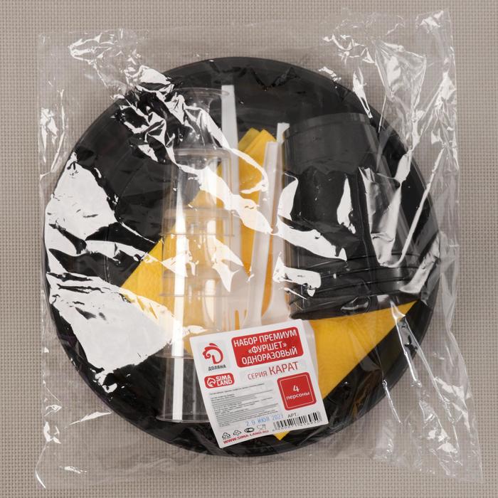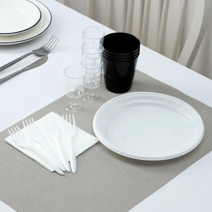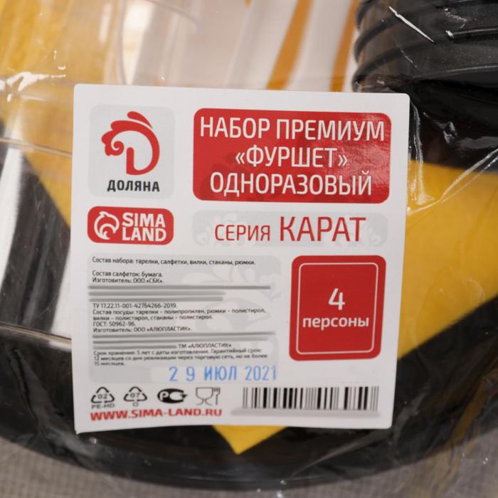 Набор одноразовой посуды премиум Доляна «Фуршет», 4 персоны, тарелки, вилки, стаканы 200 мл, рюмки 100 мл, салфетки — Характеристики