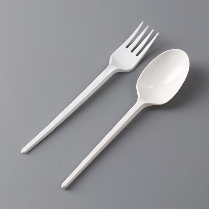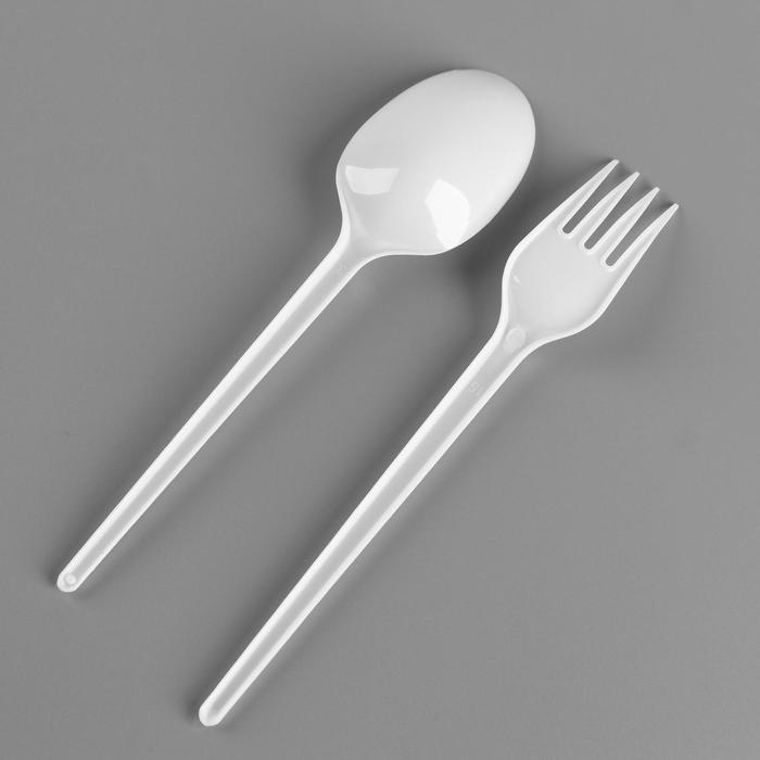 Набор одноразовой посуды «Вилка, ложка» белый, 16,5 см