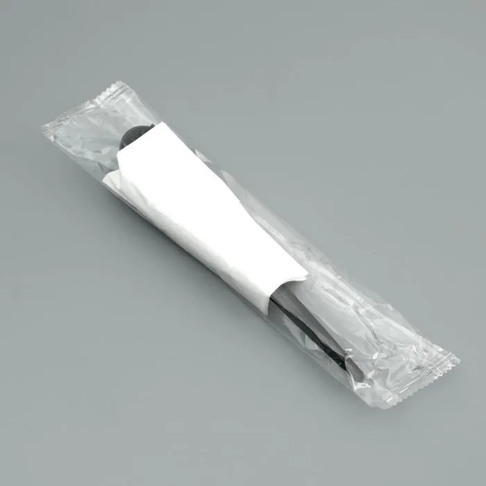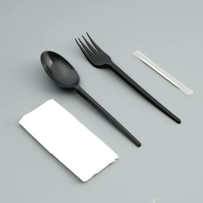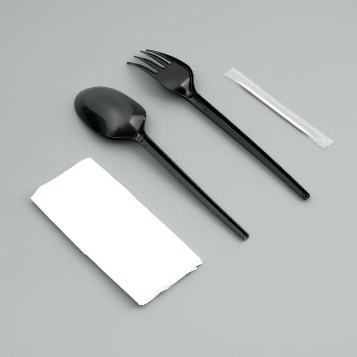 Набор одноразовой посуды «Вилка, ложка, салф.бум., зубочистка» черный, 16,5 см