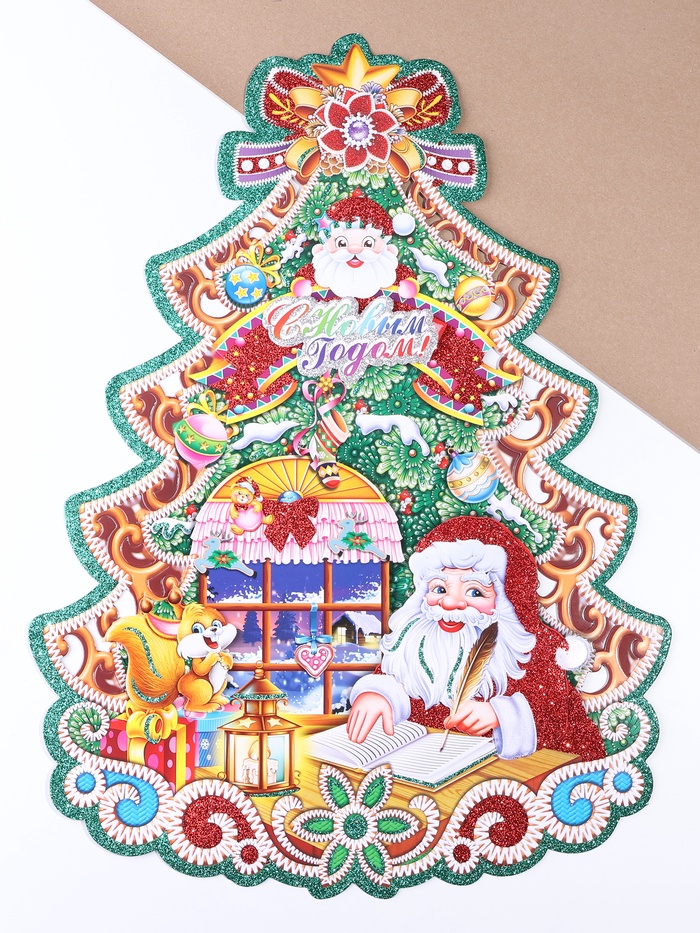 Плакат на стену «С Новым Годом!» елка, Санта Клаус, 40×52 см