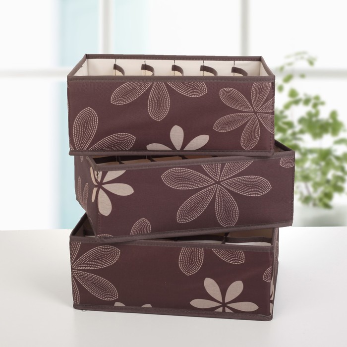 Набор органайзеров для хранения белья «Листочки», 3 шт, 32×24×12 см, цвет коричневый — Характеристики