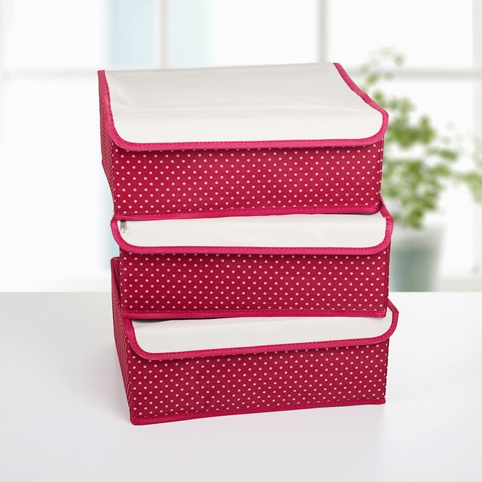Набор органайзеров для хранения белья с крышкой «Горох», 3 шт, 32×24×12 см, цвет красный — Характеристики