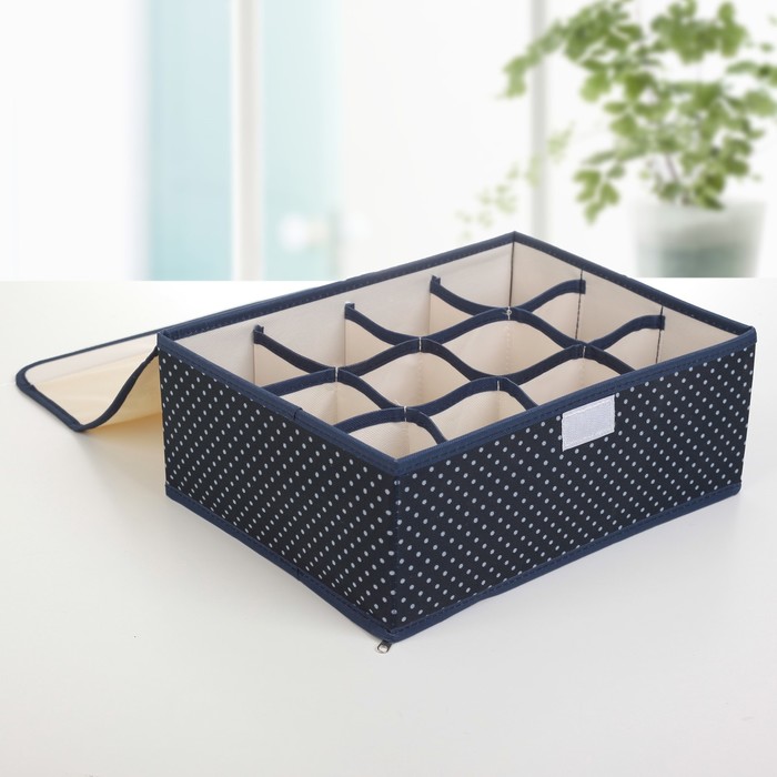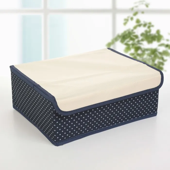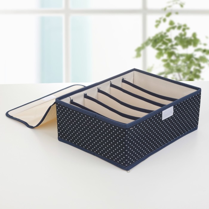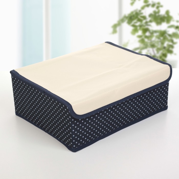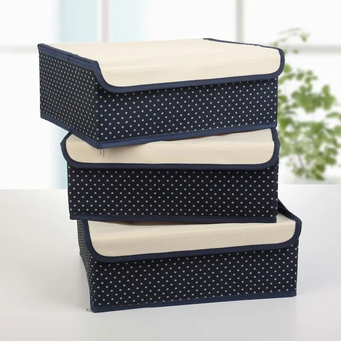 Набор органайзеров для хранения белья с крышкой «Горох», 3 шт, 32×24×12 см, цвет тёмно-синий — Характеристики
