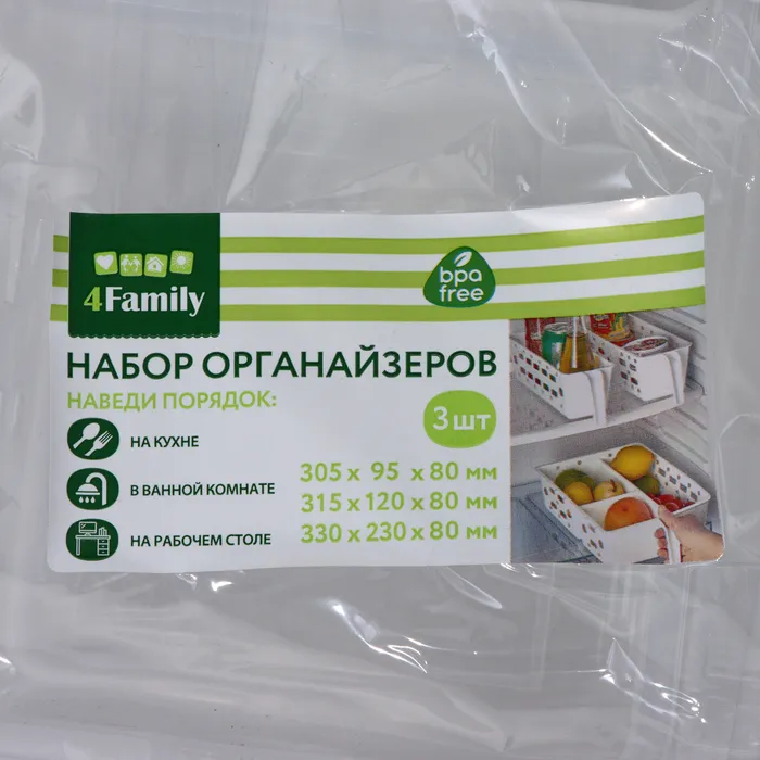 Набор органайзеров универсальных (S+M+L), 3 шт, прозрачная — Характеристики