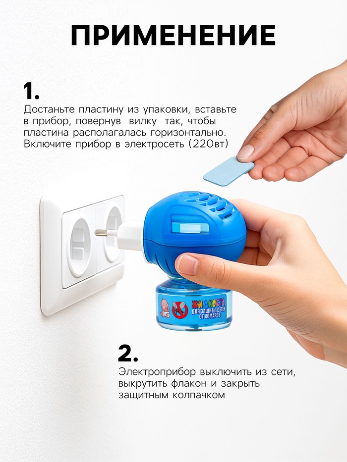 Детский набор для защиты от комаров создаёт безопасный барьер против насекомых в вашей комнате. В комплекте – устройство, флакон жидкости и пластины с мягкой формулой, рассчитанной на чувствительный детский организм.