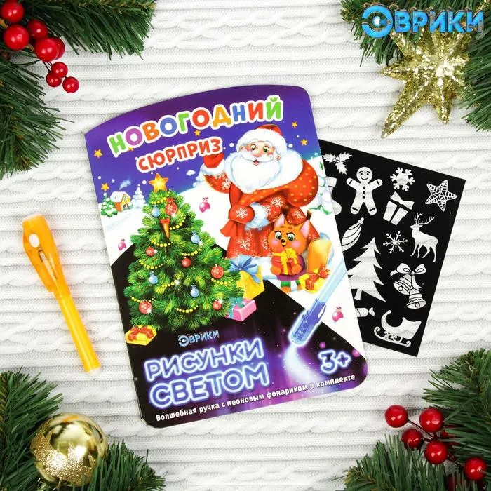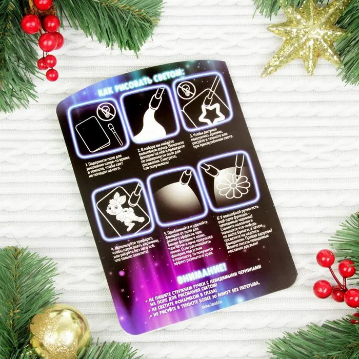 С помощью специального маркера ребёнок научится рисовать светом. Малыш будет создавать картинки, используя трафареты, или придумает собственные сюжеты.